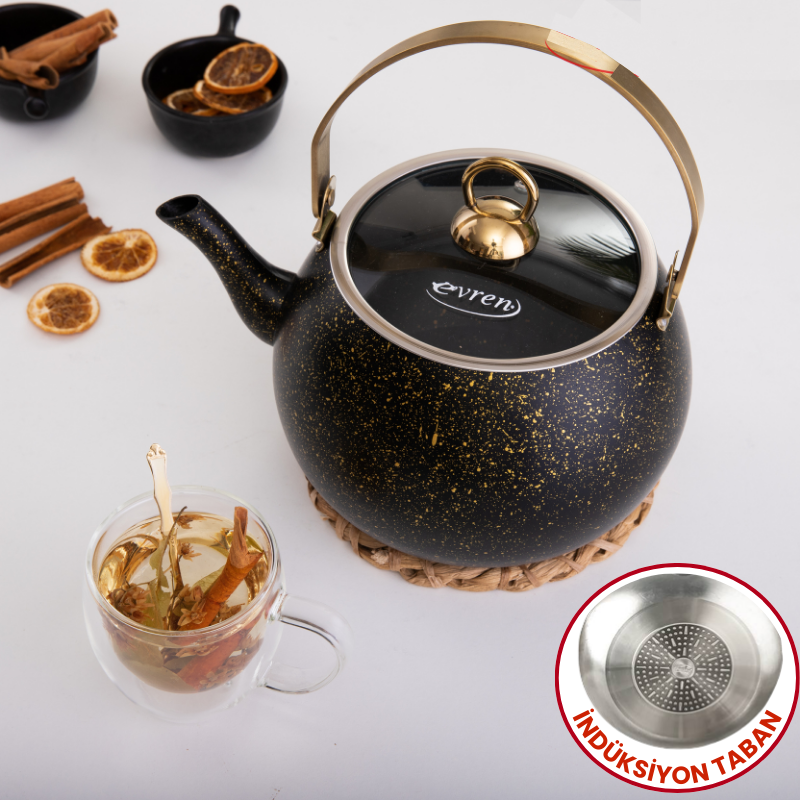Evren Gold Stone İndüksiyonlu Küre Bitki Çayı Demliği Büyük Boy 3 lt